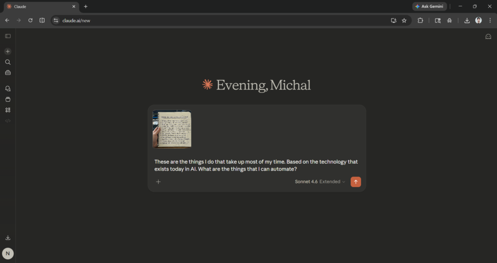 “These are the tasks that consume most of my time. Based on current AI technology, what specific processes can I automate?”